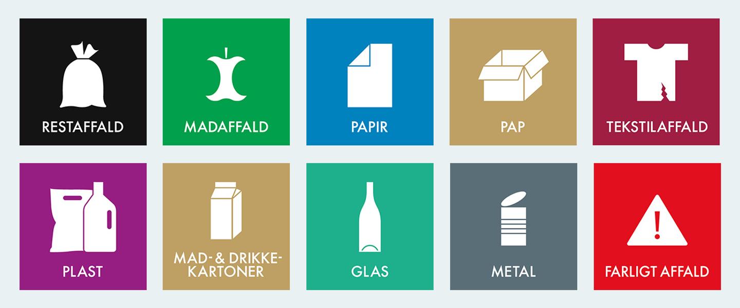Brug piktogrammer til affaldssortering - Korrekt mærkning hjælper alle i klinikken – både personale og evt. rengøringshjælp – med at sortere affaldet korrekt. Sæt piktogrammer på affaldsspande og beholdere, der tydeligt viser, hvilken affaldsfraktion der hører til hvor. Brug Miljøstyrelsens officielle piktogrammer for ensartethed og genkendelighed. Du kan købe klistermærker med Miljøstyrelsens officielle piktogrammer hos flere virksomheder, såsom Huma, JO Safety eller GREENOFF. Klistermærkerne kan du sætte på skraldespandene så du nemt kan afkode affaldstypen og derved sortere dit affald korrekt.